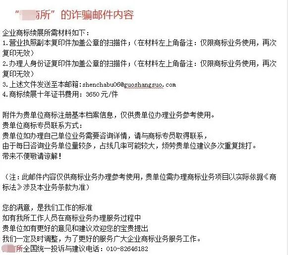 诈骗手段远不止上述四类,还有《互联网品牌》《电子商标》等莫须有的骗钱名目,各位商标注册人请擦亮眼睛,小心谨慎,若收到有关于商标和专利的收费项目,请及时与我司联系,以免受骗。